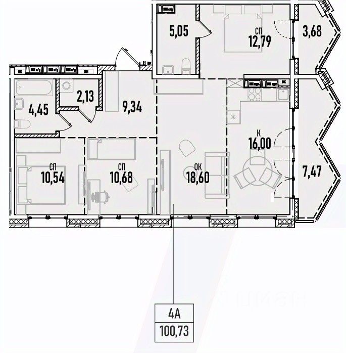 Общая площадь100,73 м²