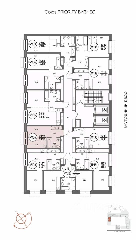 Продаётся студия в строящемся доме (Дом 4), срок сдачи: III-кв. 2029, общей площадью 23.98 кв.м., на 2 этаже. Мы начали с эталона - жилого комплекса Союз Priority, лучшего в России. А теперь представляем его логичное и яркое продолжение Союз Priority MAX.