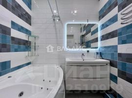 В ванной комнате установлена джакузи, большая раковина с зеркалом с подсветкой. Отделка керамогранитом, полы с подогревом.