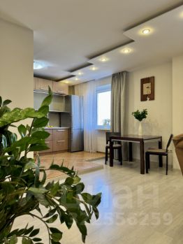 Квартира общей площадью 92.7 м2 плюс застекленная лоджия 4,4 м2, Удобная планировка: просторная кухня-гостиная, две спальные комнаты (17.7 м2 и 13 м2), раздельный санузел. Квартира расположена на 8 этаже кирпичного дома с видом во двор и на город.