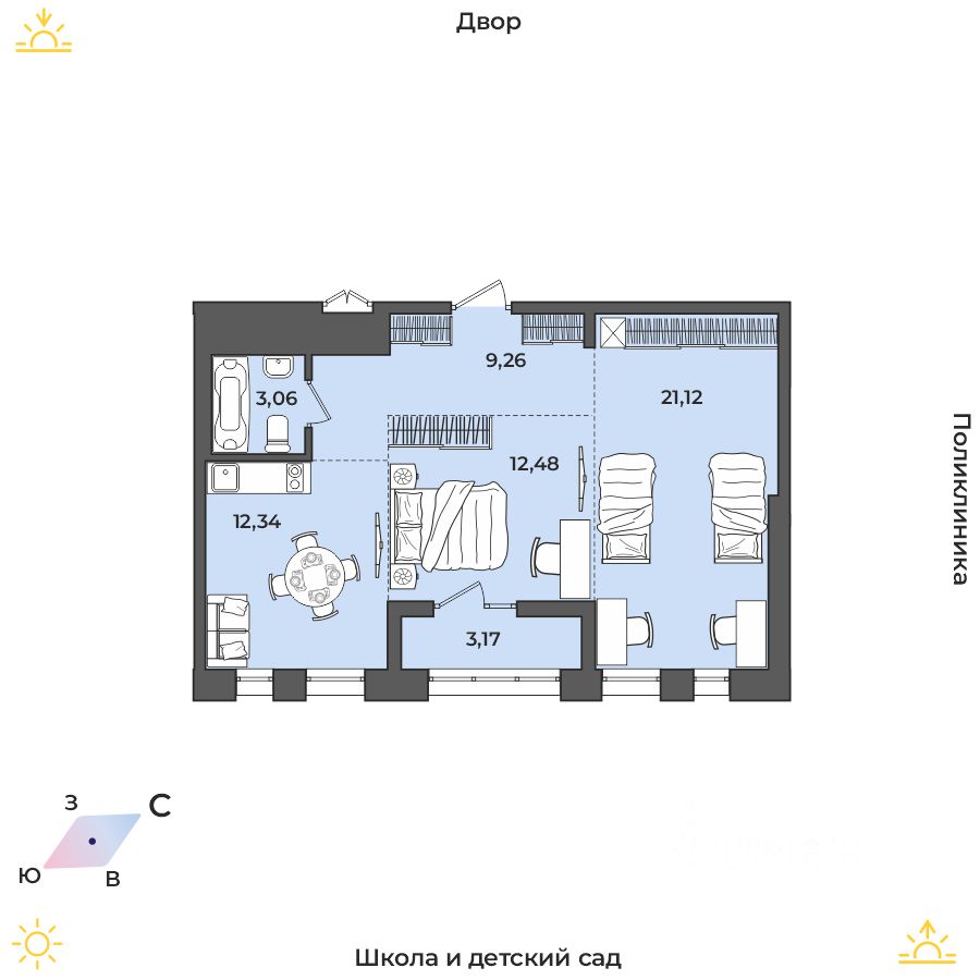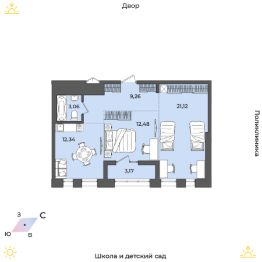 Продаётся 2-комнатная квартира в строящемся доме (Дом 17 (Академика Герасимова, 10)), срок сдачи: I-кв. 2026, общей площадью 61.43 кв.м., на 1 этаже. Расположение, транспортная доступность