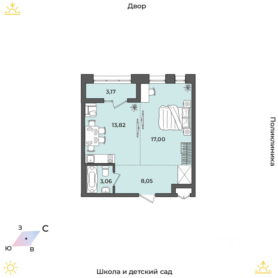 Продаётся 1-комнатная квартира в строящемся доме (Дом 17 (Академика Герасимова, 10)), срок сдачи: I-кв. 2026, общей площадью 45.1 кв.м., на 1 этаже. Расположение, транспортная доступность