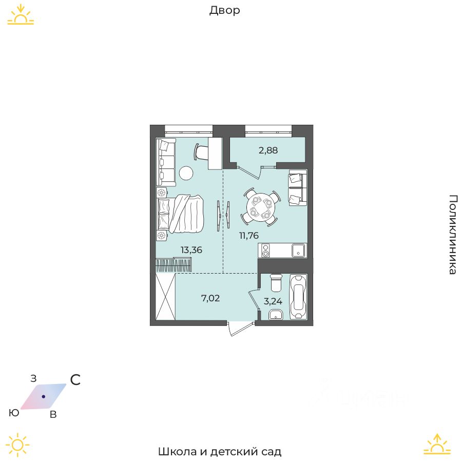 Продаётся 1-комнатная квартира в строящемся доме (Дом 17 (Академика Герасимова, 10)), срок сдачи: I-кв. 2026, общей площадью 38.26 кв.м., на 3 этаже. Расположение, транспортная доступность