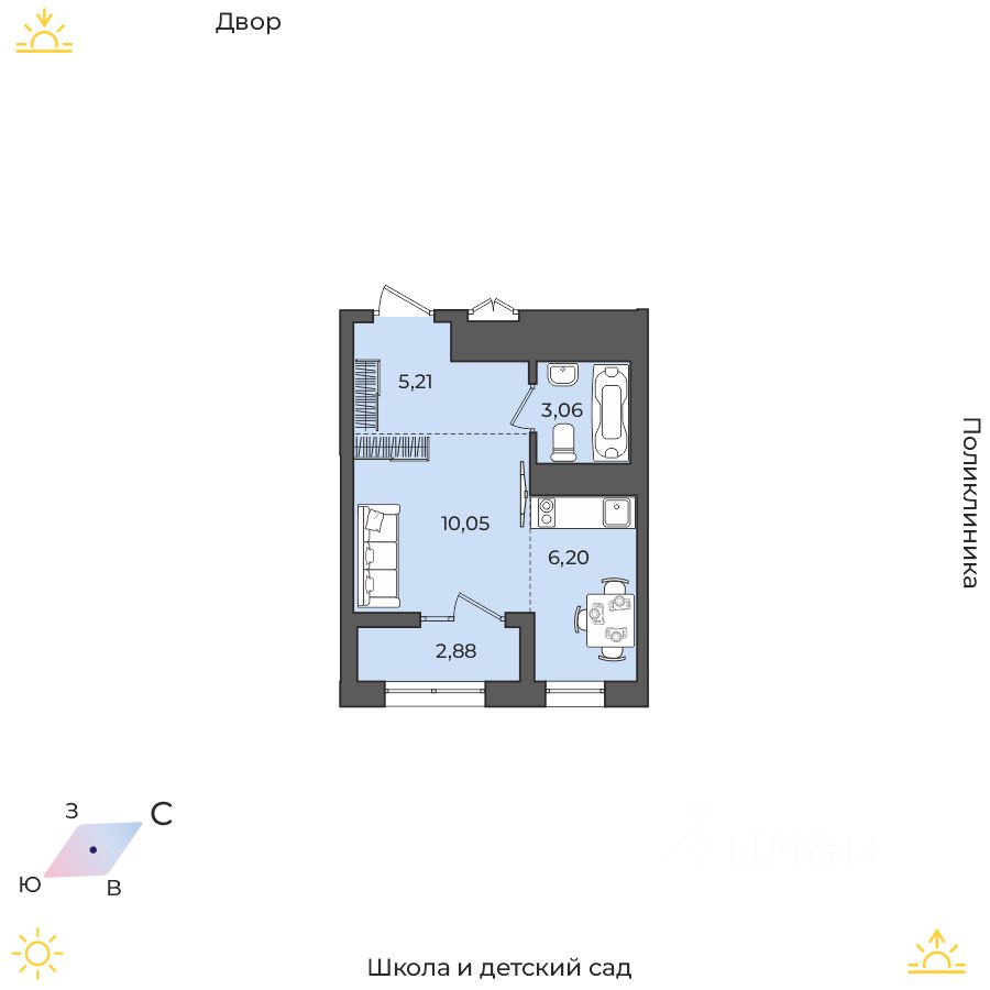 Продаётся 1-комнатная квартира в строящемся доме (Дом 17 (Академика Герасимова, 10)), срок сдачи: I-кв. 2026, общей площадью 27.4 кв.м., на 8 этаже. Расположение, транспортная доступность