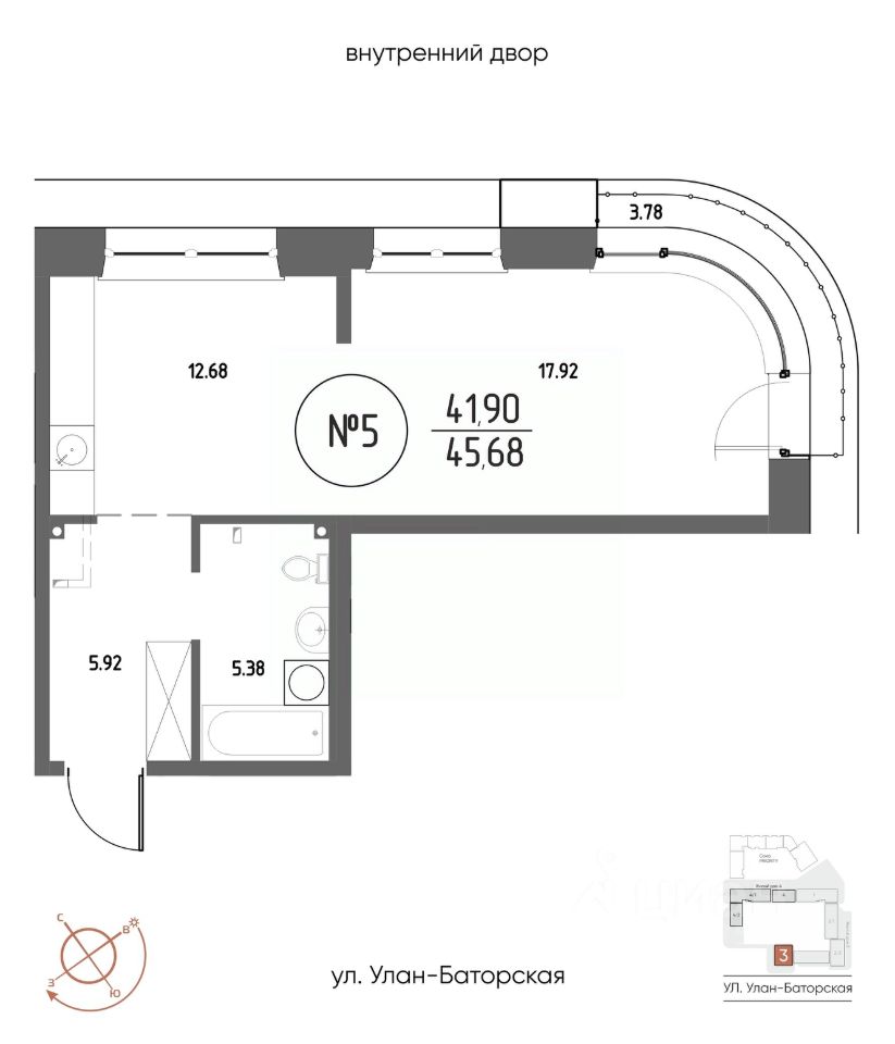 Продаётся 1-комнатная квартира в строящемся доме (Дом 3), срок сдачи: III-кв. 2029, общей площадью 45.68 кв.м., на 2 этаже. Мы начали с эталона - жилого комплекса Союз Priority, лучшего в России. А теперь представляем его логичное и яркое продолжение Союз Priority MAX.
