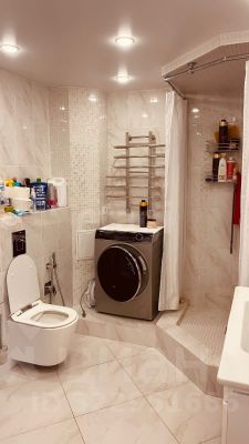- два санузла ( унитазы с инсталляцией , душевая , ванная ), отделка итальянской плиткой в гармоничной цветовой гамме . Площадь санузлов позволяет разместить стиральную и сушильную машину .