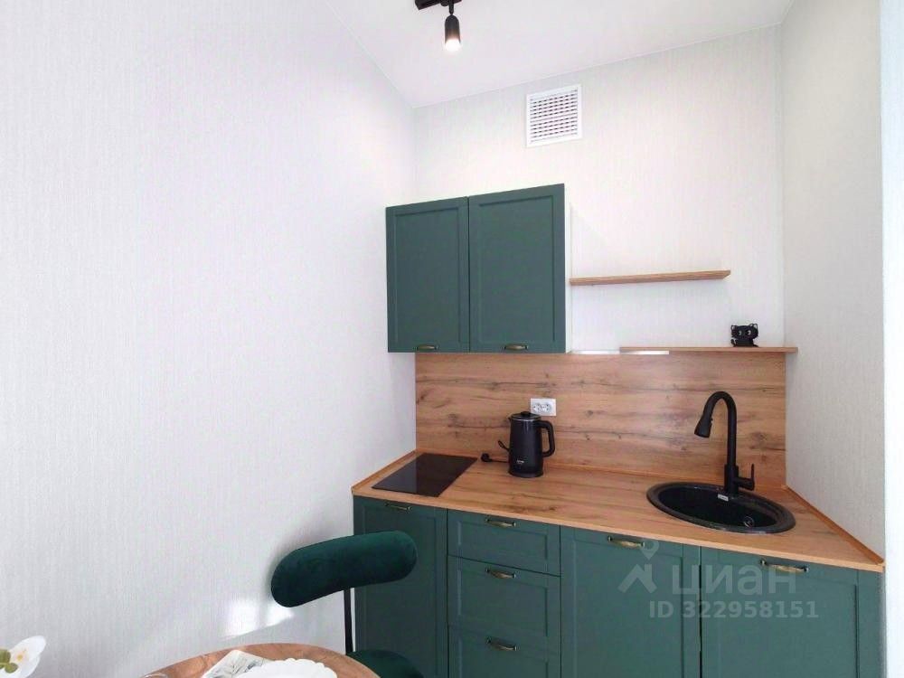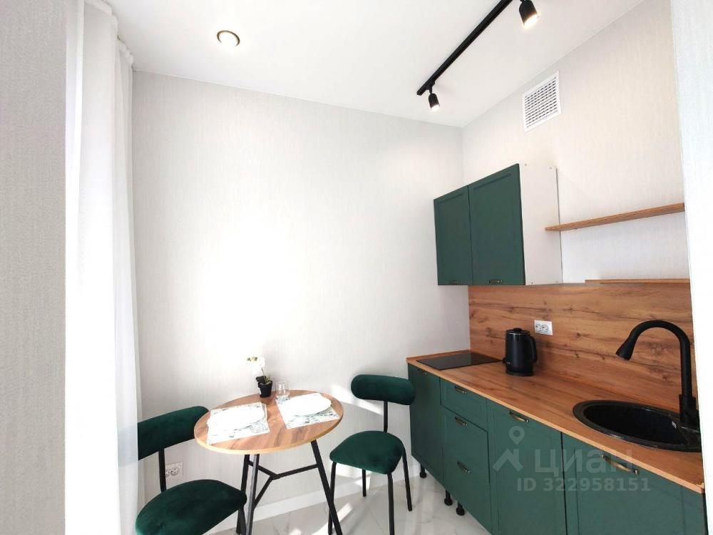 Установлена кухонная мебель и обеденная группа, полное оснащение санузла и стиральная машинка. Вам останется только дооснастить квартиру спальной мебелью (кровать или диван) и можно заезжать!