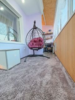 Один из балконов застеклен и превращен в уютный уголок для отдыха с удобной качелей — ваше любимое место для утреннего кофе или вечерних посиделок.