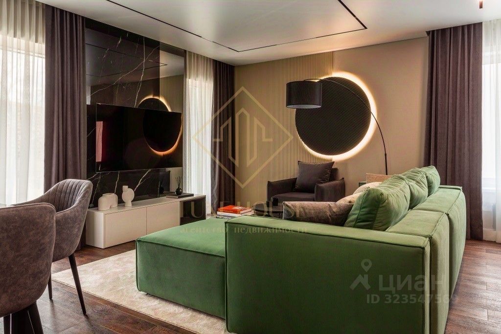 •Авторский дизайн: Интерьер, созданный с использованием премиальных отделочных материалов, сочетает в себе элегантность и функциональность, создавая атмосферу уюта и стиля.