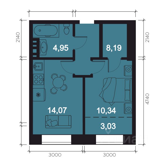 Общая площадь40,58 м²