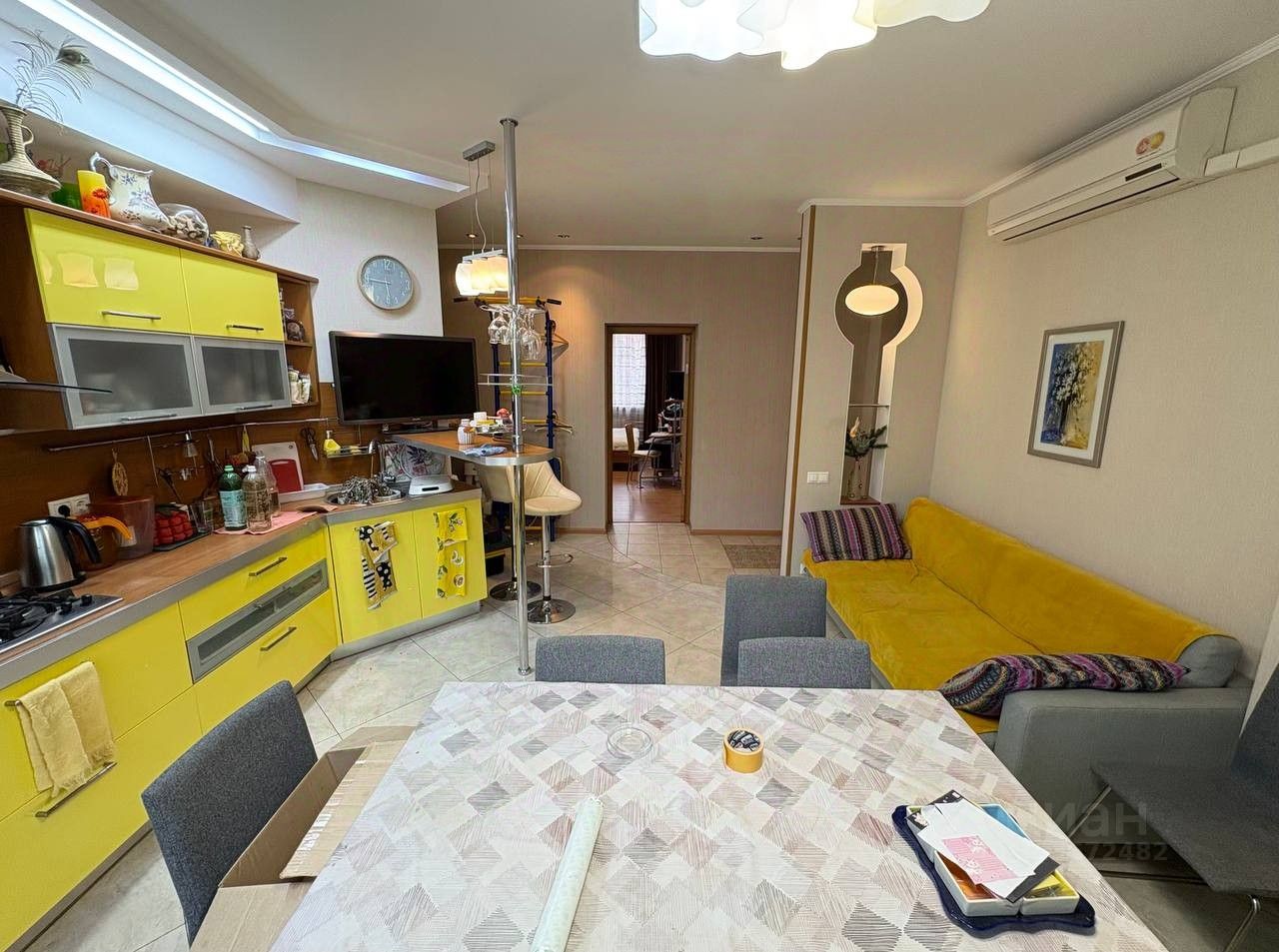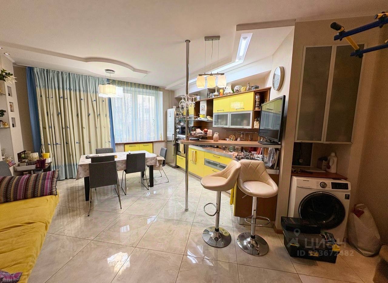 Продается большая, удобная и уютная квартира с хорошим дизайнерским ремонтом в связи с переездом в другой город. Три большие раздельные комнаты, плюс огромная кухня-гостиная (17 кв.м.), по сути четвертая комната. Детская комната зонирована, что позволяет жить разнополым детям. Санузел совмещенный. Коридор большой Г-образный, имеется гардеробная с сейфом для оружия. Гардеробная вместе с прихожей - это бывшая колясочная, присовокупленная к квартире, что добавляет 6 кв.м. к общей площади. Также имеется подвальная комната (6 кв.м.) для хранения велосипедов, авторезины и т.п.