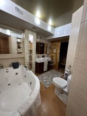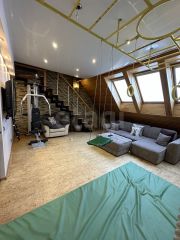 Полноценные три спальни, кухня, гостиная, два санузла, спортивный зал, сауна, прихожая, лоджия.