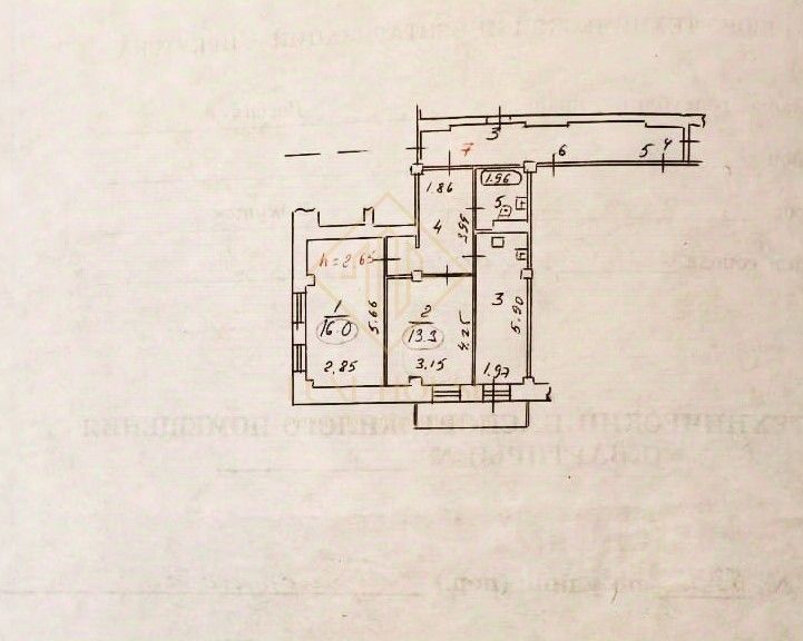 -Высота потолков-2,65 м.