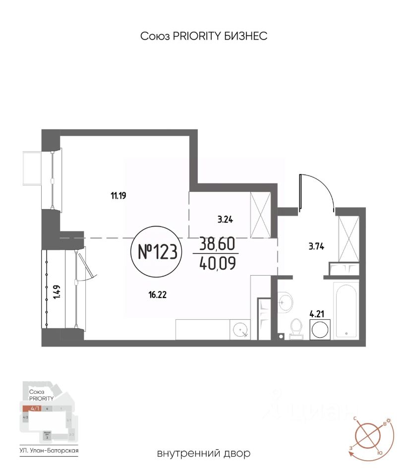Продаётся 1-комнатная квартира в строящемся доме (Дом 4), срок сдачи: III-кв. 2029, общей площадью 40.09 кв.м., на 12 этаже. Мы начали с эталона - жилого комплекса Союз Priority, лучшего в России. А теперь представляем его логичное и яркое продолжение Союз Priority MAX.