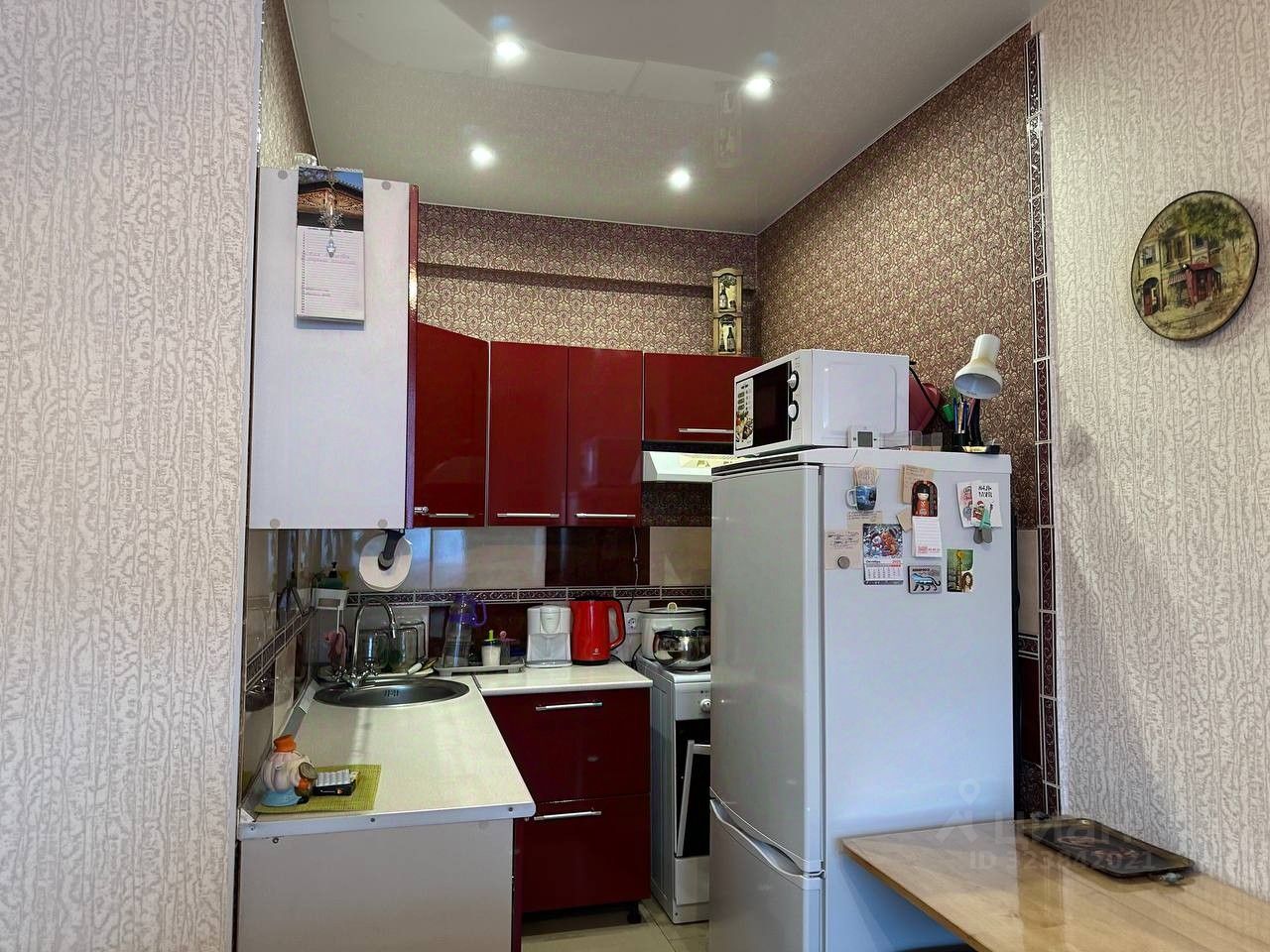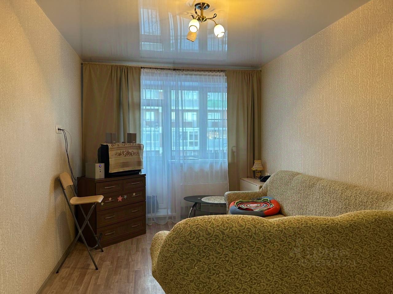 В квартире выполнен простой, но современный ремонт, на полу линолеум/плитка, на стенах обои, натяжные потолки, в сан узле - кафель, современная сантехника. В зоне кухни-фартук из керамической плитки. Окна пластиковые, лоджия 6м3 - не застеклена. Частично остаётся мебель.