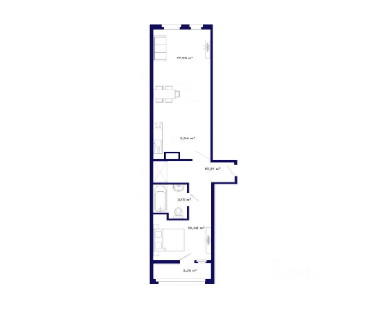 2 комнатная квартир, площадью 50,45 кв. м.