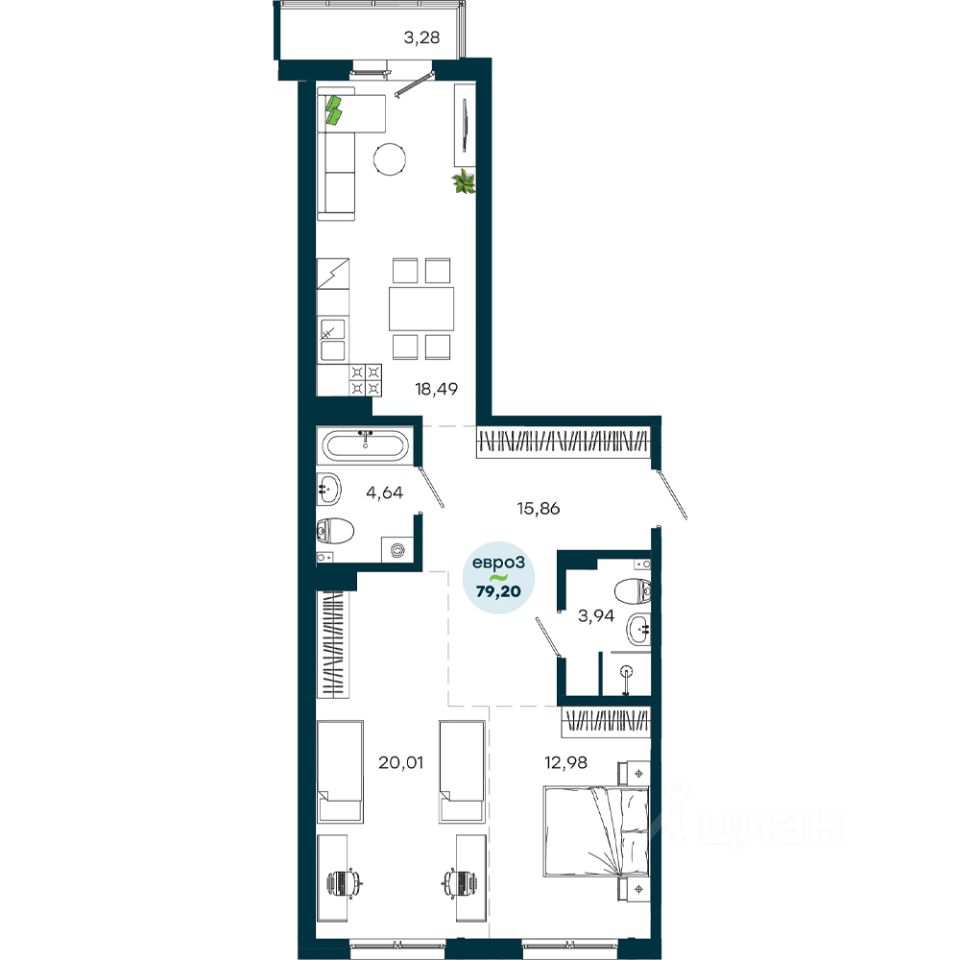 Продаётся 2-комнатная квартира в строящемся доме (Дом 2), срок сдачи: II-кв. 2028, общей площадью 79.2 кв.м., на 7 этаже. Живой комплекс - это новый семейный проект на Кузьмихе. Два живых дома, где вся ключевая инфраструктура находится прямо внизу - это экономит время и делает жизнь проще.