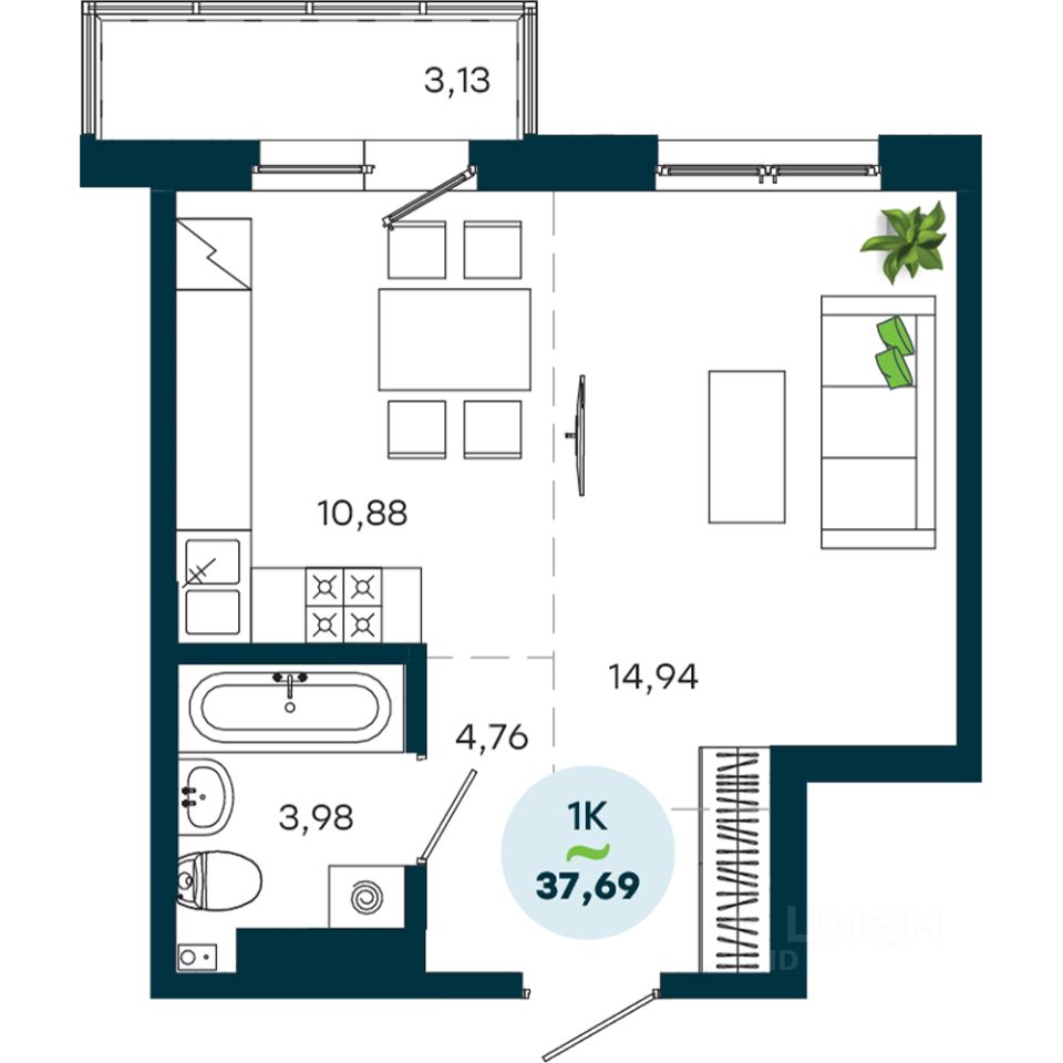 Продаётся 1-комнатная квартира в строящемся доме (Дом 2), срок сдачи: II-кв. 2028, общей площадью 37.69 кв.м., на 5 этаже. Живой комплекс - это новый семейный проект на Кузьмихе. Два живых дома, где вся ключевая инфраструктура находится прямо внизу - это экономит время и делает жизнь проще.