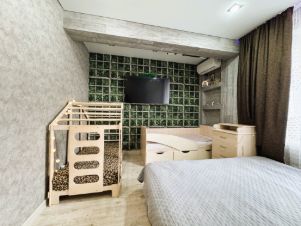 Покупателю в квартире готовы оставить всю необходимую мебель и технику, кроме спальных мест (детских кроватей и двухспальной кровати).