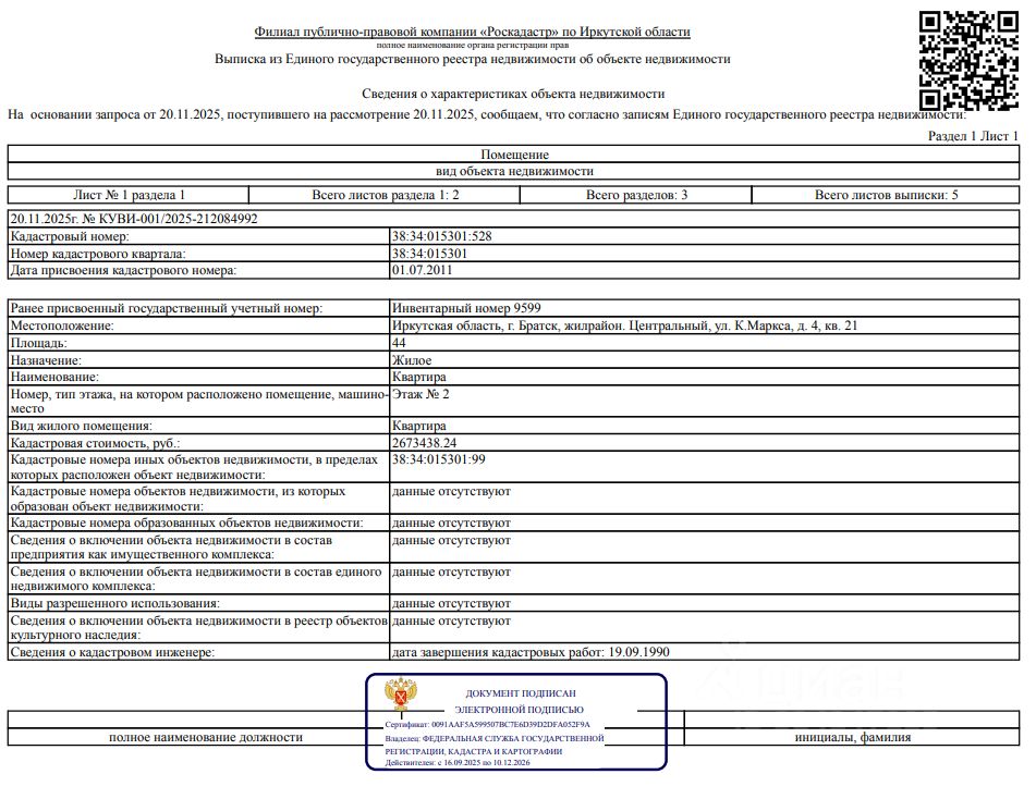 Сведениями о фактическом состоянии объекта недвижимости, о задолженности по коммунальным платежам и взносам на капитальный ремонт, об обременении третьих лиц в виде сохранения права пользования объектами организатор торгов не располагает.Зарегистрировано четверо человек, из них двое несовершеннолетних.