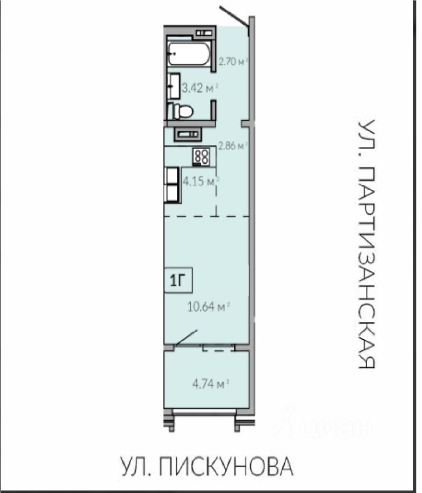 Площадь 28.11 кв. м. плюс лоджия 4,74 кв. м