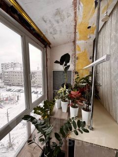 Балкон утеплён, установлено панорамное остекление в пол. Это позволило увеличить полезную площадь квартиры, а также добавить нотки уюта и индивидуальности.