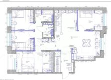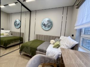 В квартире кухня-гостиная, родительская спальня с гардеробной, 2 детских спальни, а также кабинет/гостевая комната для гостей или помощников по дому.