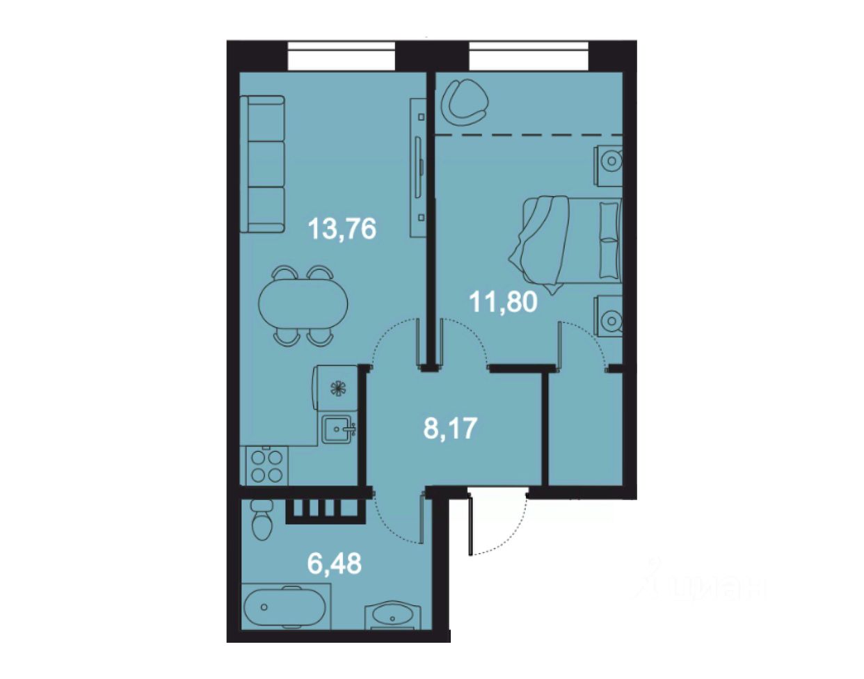 Общая площадь48,7 м²