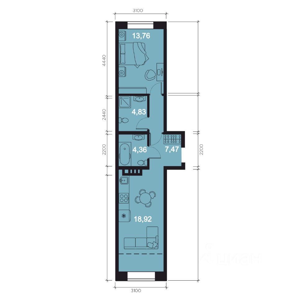 Высота потолков от 3 до 3.4м (квартиры high flat)