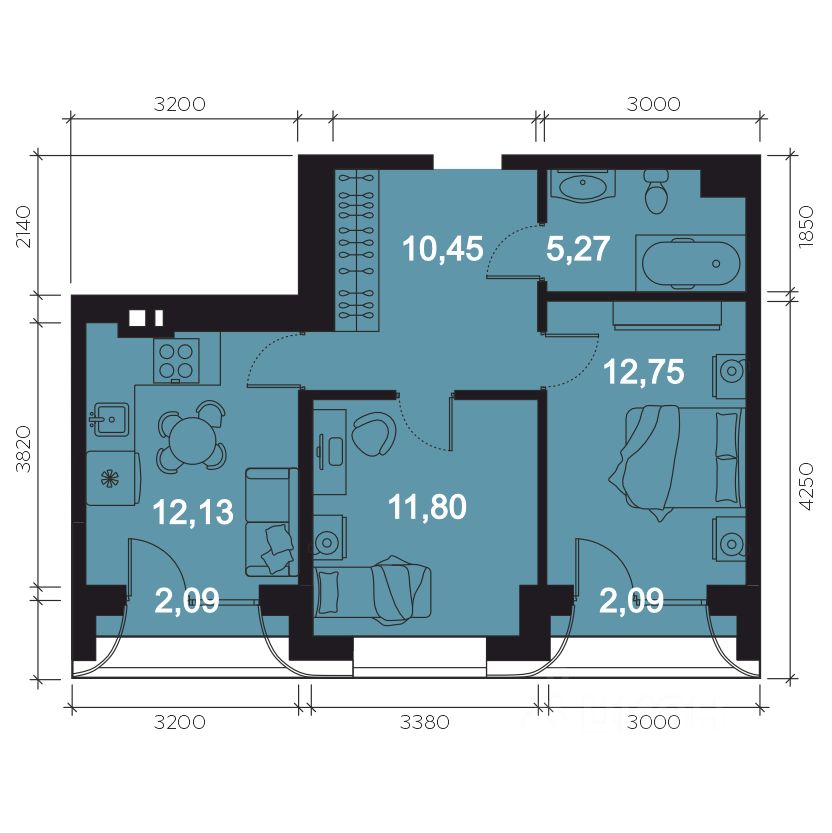Общая площадь56,58 м²