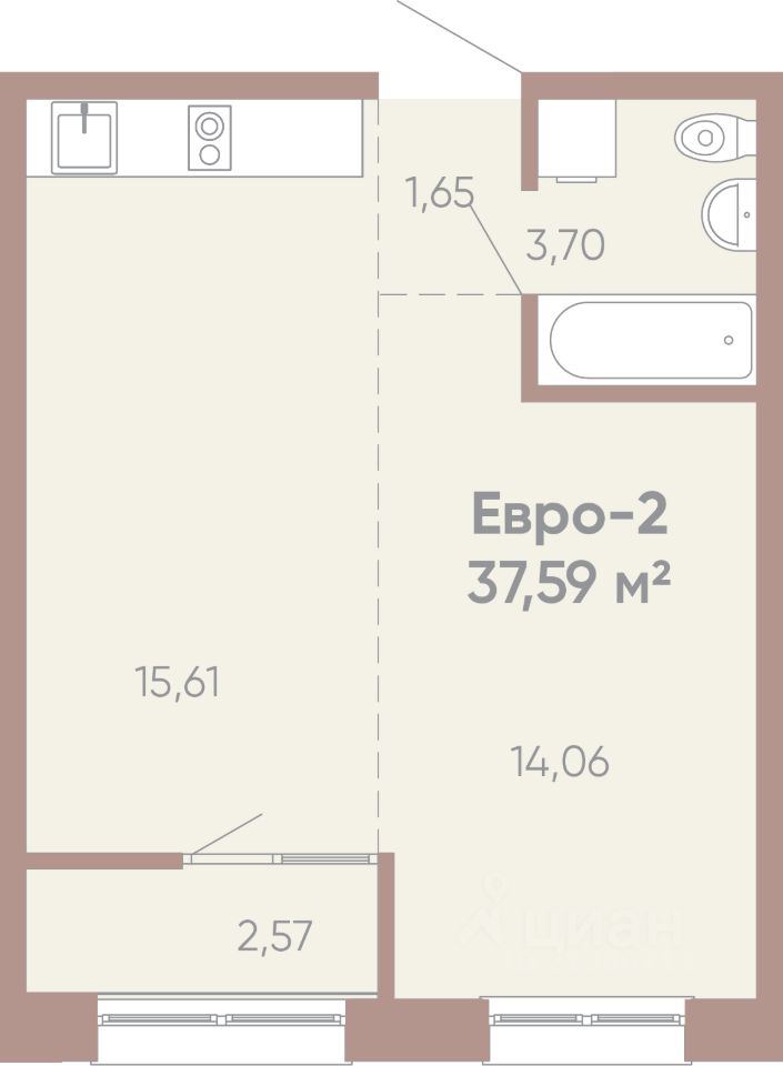 Общая площадь37,59 м²