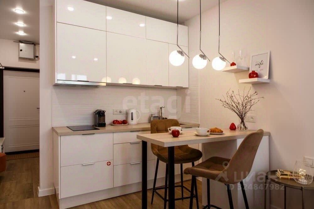 Транспортная доступность высокая: расстояние до центра города составляет 3,4 км, до аэропорта — 3,5 км. Квартира полностью готова к комфортному проживанию и укомплектована всем необходимым, включая двуспальную кровать, систему хранения, кухонную зону со встроенной техникой, кондиционер, стиральную машину и смарт-телевизор.