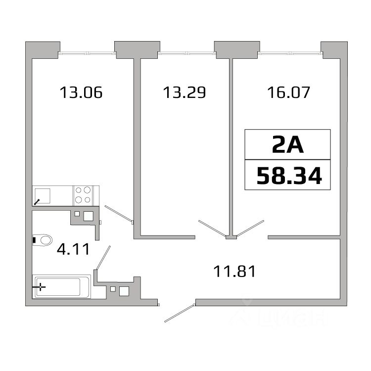Общая площадь59,14 м²