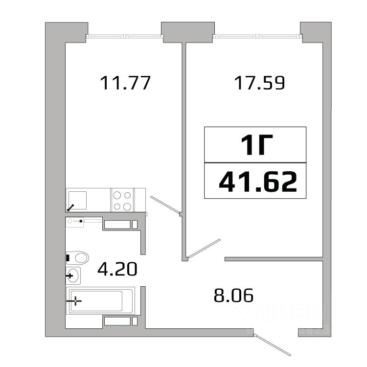 Общая площадь41,62 м²