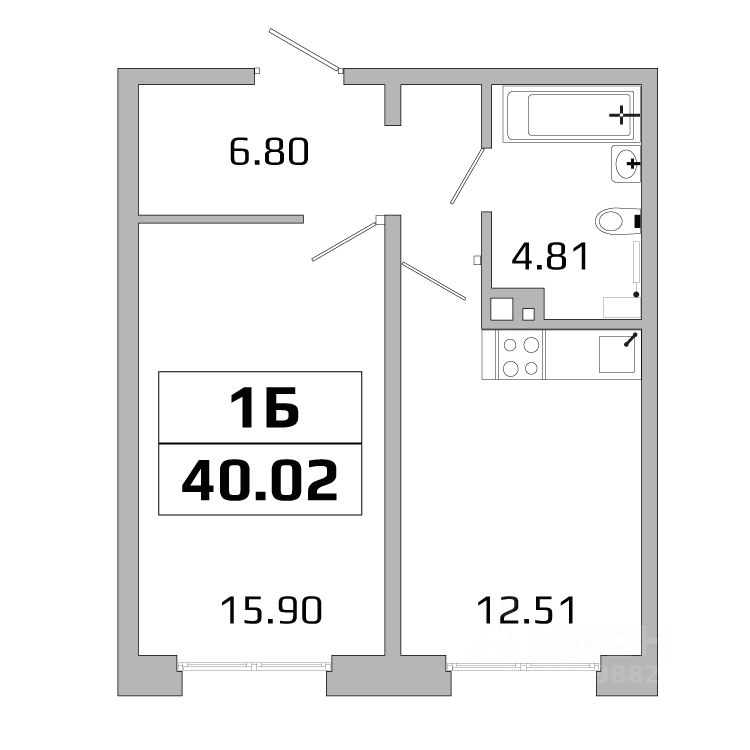 Общая площадь40,02 м²