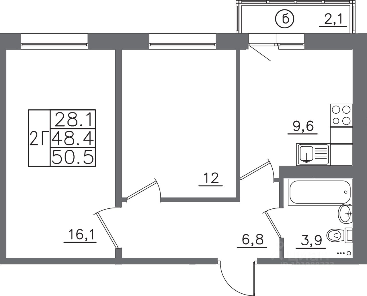Общая площадь50,5 м²