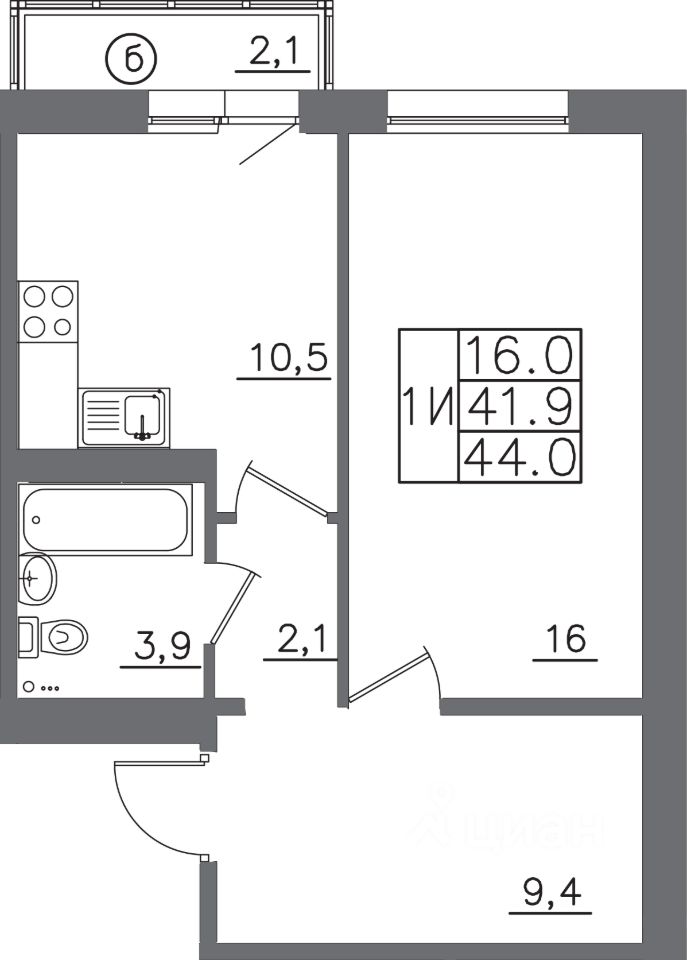 Общая площадь44 м²