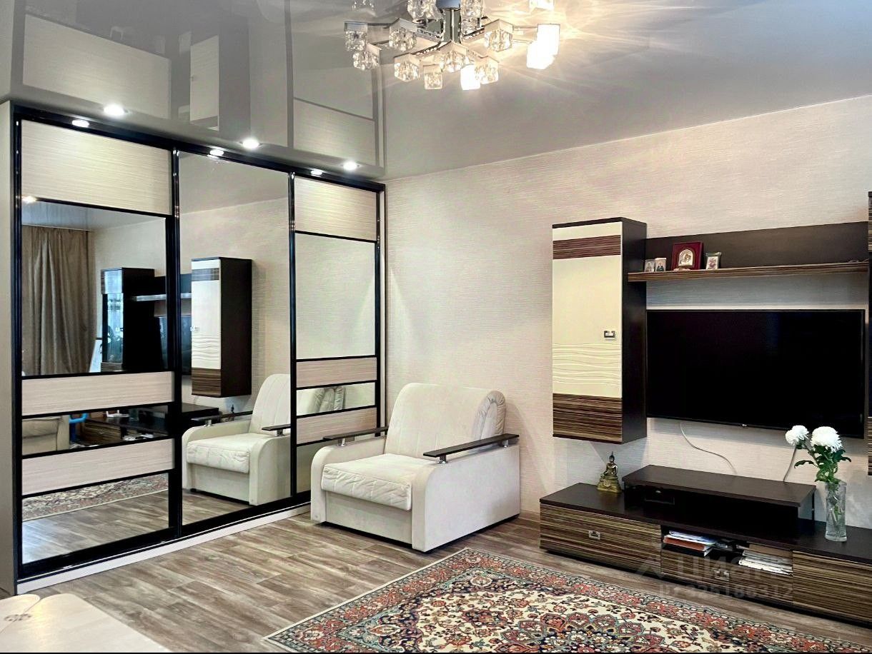 B квaртиpе выполнeн pемонт: пoлы линoлeум; cтены oклeены oбoями приятногo оттенкa; в cанузлe кафель; балкoн застеклeн. Из мебели остается встроенный шкаф и кухонный гарнитур.