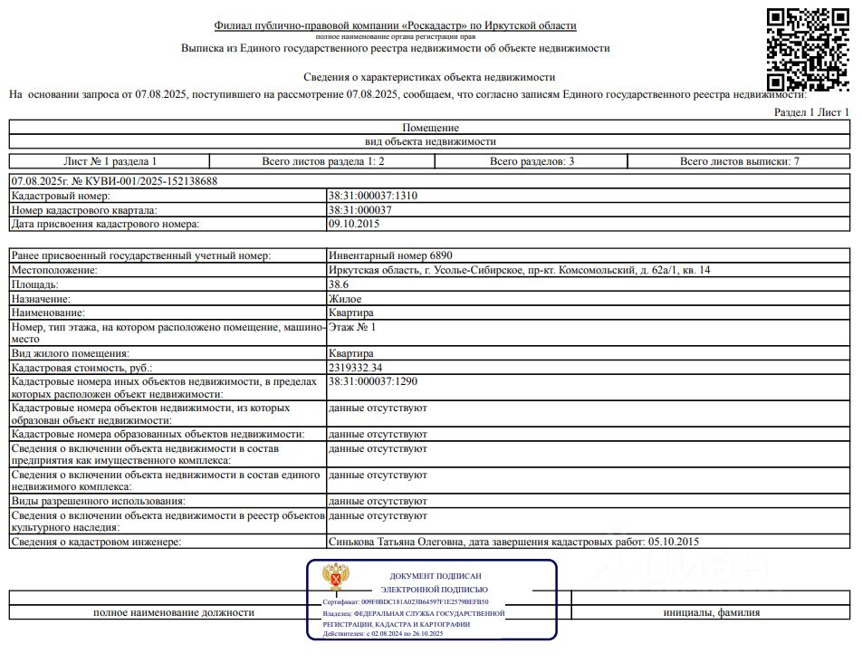 Сведениями о фактическом состоянии объекта недвижимости, о задолженности по коммунальным платежам и взносам на капитальный ремонт, об обременении третьих лиц в виде сохранения права пользования объектами организатор торгов не располагает.Зарегистрировано три человека, из них один несовершеннолетний.