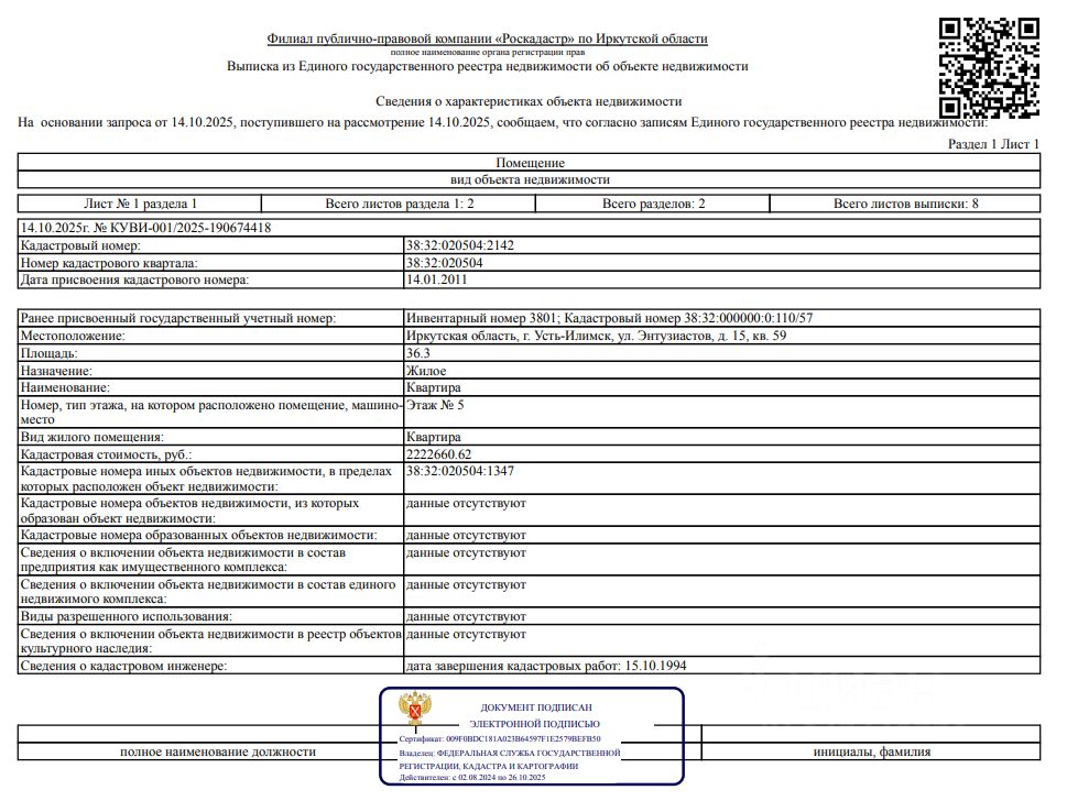 Сведениями о фактическом состоянии объекта недвижимости, о задолженности по коммунальным платежам и взносам на капитальный ремонт, об обременении третьих лиц в виде сохранения права пользования объектами организатор торгов не располагает.Зарегистрировано четверо человек, из них двое несовершеннолетних.