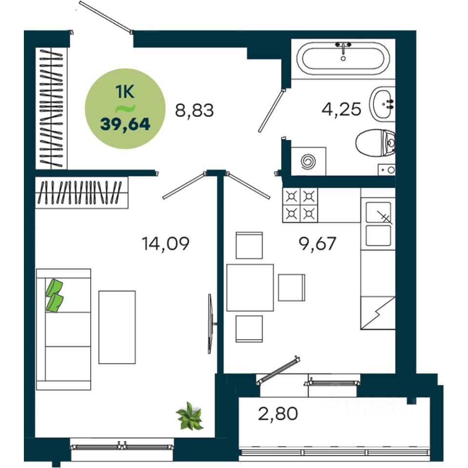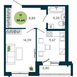 Продаётся 1-комнатная квартира в строящемся доме (Дом 2), срок сдачи: II-кв. 2028, общей площадью 39.64 кв.м., на 4 этаже. Живой комплекс - это новый семейный проект на Кузьмихе. Два живых дома, где вся ключевая инфраструктура находится прямо внизу - это экономит время и делает жизнь проще.