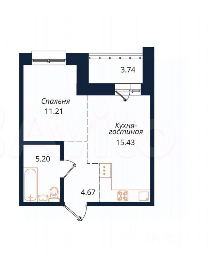 15,4 м²