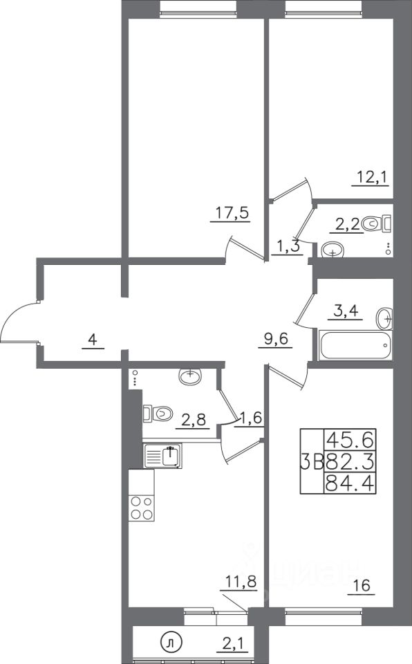 Общая площадь84,4 м²