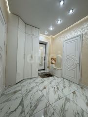 Заменена электрика, сантехника, радиаторы, выровнены полы. Натяжные парящие матовые потолки. Много света, который можно регулировать как с выключателя, так и с пульта. Светильники дизайнерские (Италия, Германия).