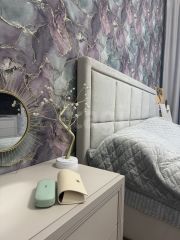 Стены выровнены, дорогие обои и декоративная штукатурка. Встроенный шкаф, двери, окна - все делали на заказ.