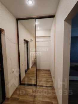 Встроенная гардеробная с зеркальными раздвижными дверями у выхода