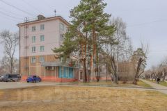 Окна квартиры выходят во двор, где расположены две детские площадки, что делает это место идеальным для семей с детьми.