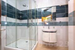 Ванная комната выполнена из кафеля, установлена душевая кабина помимо джакузи. Современная стиральная машина (miele), полы с подогревом.