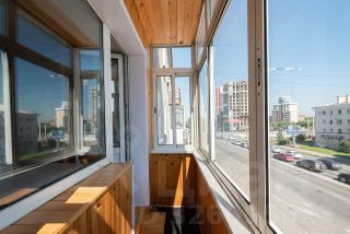 Балкон с отделкой и стеклопакетами.