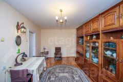 Планировка смежно-раздельная, имеется застекленный балкон, кладовка (гардеробная). Окна большие, деревянные. Стены выровнены, на полу линолеум. Квартира теплая, солнце во второй половине дня.